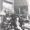 Jessie Hansen i sit hjem omgivet af blomster, muligvis en rund fødselsdag