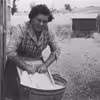 Ellen Hansen i gang med at vaske udenfor Uglebrogård, Valby