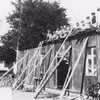 Fr. Laurine Nielsen, økonoma, med barnevogn. Toreby alderdomshjem, "Aldershvile", og husflidsskolen.