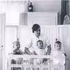 3 børn i tremmeseng samt barneplejerske på Tølløse Optagelseshjem, Kvarmløsevej 20