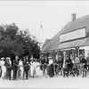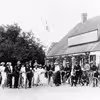 Cykeludflugt. Start Vestergade 11, Ringe, ved Alfred Knudsens Købmandsgård. Ca. 1910.