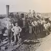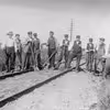 Pederstrup Station, med banearbejdere, Sydfynske Jernbaner.