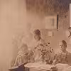 Alhed Warberg og tre unge piger gør klar til gæster på "Erikshaab" ved Fåborg.