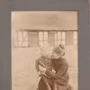 Alhed Warberg, gift med Johannes Larsen, leger med sin hund "Munter" på "Erikshaab".