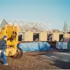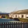Foto taget tværs over Borgmester Hansensvej, der hvor skoletandplejen senere kom til at ligge. I baggrunden ses skorstenen og drivhusene fra Johannes Erik Rasmussens gartneri, Askvej 4, Kerteminde.
