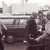 Kjerteminde Avis' bestyrelsesformand, Baltsar Nielsen hilser på tre avis bude.