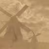 Svanemøllen og Kirkemøllen, Møllebakken 9 & 2, Kerteminde i silhuet mod himlen, ca. 1920