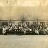Sølvbryllupsselskab fotograferet foran stuehus. Bladstrup Højgaard.