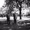 To musikere spiller morgenmusik ved Anna Kirstine og Peder Larsens guldbryllup i 1968.
