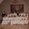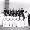 Pastor Mørk med konfirmandholdet, 4 piger og 3 drenge.