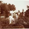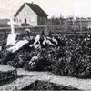 Gravsted på Otterup Kirkegård. I baggrunden hus med den nye central bygget ca. 1939-40