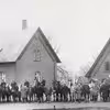 Juelsberg med masser af heste og mennesker foran to bygninger