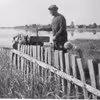 Andersen, Thorvald, Fjordvej 65, i sin have ved stranden med en lille datter.