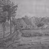 Udsigt fra Vigerøgård mod stranden. Scannet akvarel af Laurits Hansen