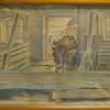 Akvarel i ramme af Laurits Hansen. Motivet er fra stalden i Munkebo kro og viser, ifgl. giveren, kroens sidste ko
