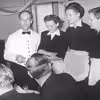 Magnus ("Skaffer") Hansen omgivet af serveringspesonale