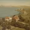 Luftfoto af Vierø i slutningen af 1950'erne. Fiskerifoged Peder Johansens hus på Vierø (bygget af Niels Jakobsen)