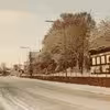 Fjordvej fotograferet vinteren 1981 set i retning fra Munkebo kro til kirkebanken.
