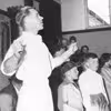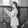 Inge Bertelsen som gymnastikleder i Munkebo Forsamlingshus 1957