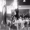 Gymnastikindmarch med fane i Munkebo Forsamlingshus.