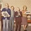 Fem dilettanter fra Munkebo opstillet udenfor Munkebo Forsamlingshus.
