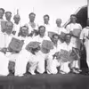 Skjolddansere uden for Munkebo Forsamlingshus 1946.