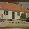 Farvefoto af Rastrup-maleri med motiv fra Hans Marius Edvardsens fødehjem kaldet "Mjødekjærhus". Huset er nu nedrevet og erstattet af ejendommen Fjordvej 121.