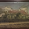 Foto af maleri af Skyttehuset. Maleri af Lars Radstrup