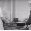 Kogekone Ellen Skov og medhjælper Dagny Barløse ved et rigtigt gammelt komfur