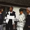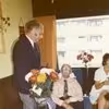 Farum kommunes socialudvalg på visit hos Hans Alsing på hans 100 års dag. Formanden, Villy ansen, holder tale