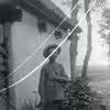 Leg i skov - 2 mand høj. Manden i bevægelse er Hans N. Hansen - Paltholm