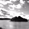 Klaus Nars Ø i Farum Sø en dag med tunge mørke regnskyer hængende over sig.