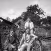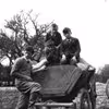 På billedet ses Niels og Olav Vang Larsen og Karl Henrik og Gerda Jensen siddende ved en mark på en plov.