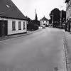 Farum Hovedgade tæt på Det runde hjørne. Til venstre ses huset, som tidligere husede Sygekassen. Til højre Farums første telefoncentral.