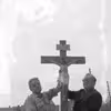 Stenhugger Olsen. Milnersvej, Hillerød, står med krusifix.