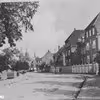 Billede fra Nr. Herlev, postkort til Pouline Larsen, enke efter smed Hans Larsen Nr. Herlev. Parti fra Nr. Herlev med købmands- gavlen med skrift på.
