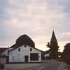 Ullerup kro, Kirkepold 1, og kirke set fra Avnbølvej