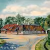 Cyklende gæster gør holdt ved Skovballe Kro. Skrædder Bonum underholder.