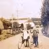 Børn med cykler ved forsamlingshuset