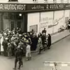 Folk står i kø for at købe Stearinlys hos A. Hundevadt.