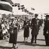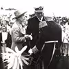 Kong Frederik d. 9 og Dronning Ingrid modtages på havnen.