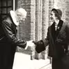 Pastor Carl Wulff Noack hilser på Dronning Ingrid.