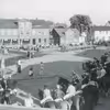 Byfester i Gram. Billedserie fra optoget i 1953 med H.C. Andersen eventyr. I baggrunden ses Hotel Gram.