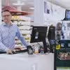 Skranken set fra kundesiden, da apoteker Jakob Grønne overtager Vojens Apotek