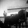 Husmand Johannes Hansen, Hørløkke Tværvej 3, Hørløkke på arbejdsvogn med to heste
