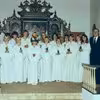 Luciapiger foran altertavlen i Vojens kirke. Til højre ses Oluf Jørgensen.