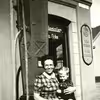 Christine Jensen med sønnen Hans Jørgen Jensen ved Vestergade 8, Vojens.