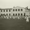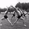 Vojens Ungdomsskole. Gymnastik på plænen med pigeholdet.