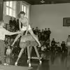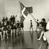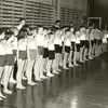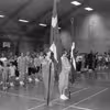 Dannebrog præsenteres ved pigernes gymnastikopvisning på Vojens Ungdomsskole.
