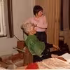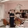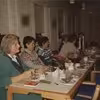 Højby Husmoderforenings modeopvisning i Højby Forsamlingshus hvor damefrisør Mona Mortensen er ved at sætte håret på Elna Jensen "Østergård" .